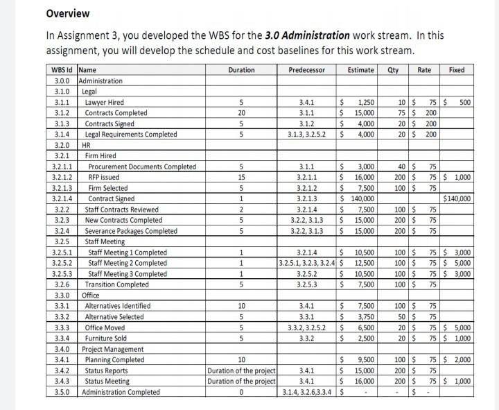 西西乃 Overview In Assignment 3 You Developed The Wbs Chegg Com